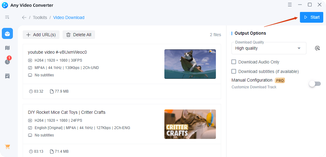 - After the analysis, you’ll see the videos information, hit on the Start button to download the YouTube videos.