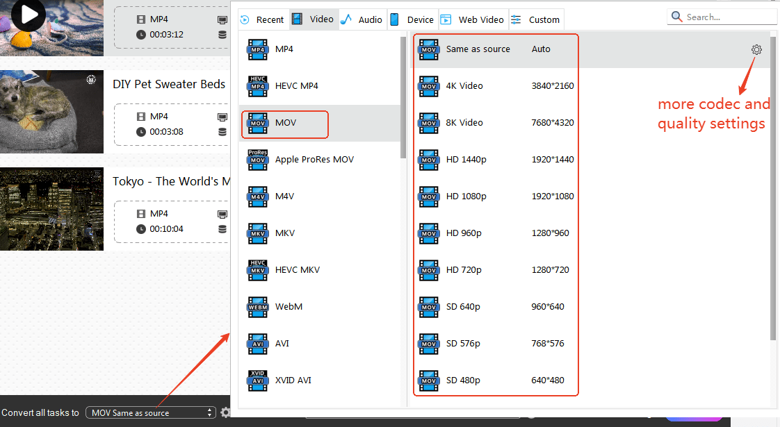 - YouTube to MOV HD, 1080P, 4K conversion without quality loss.