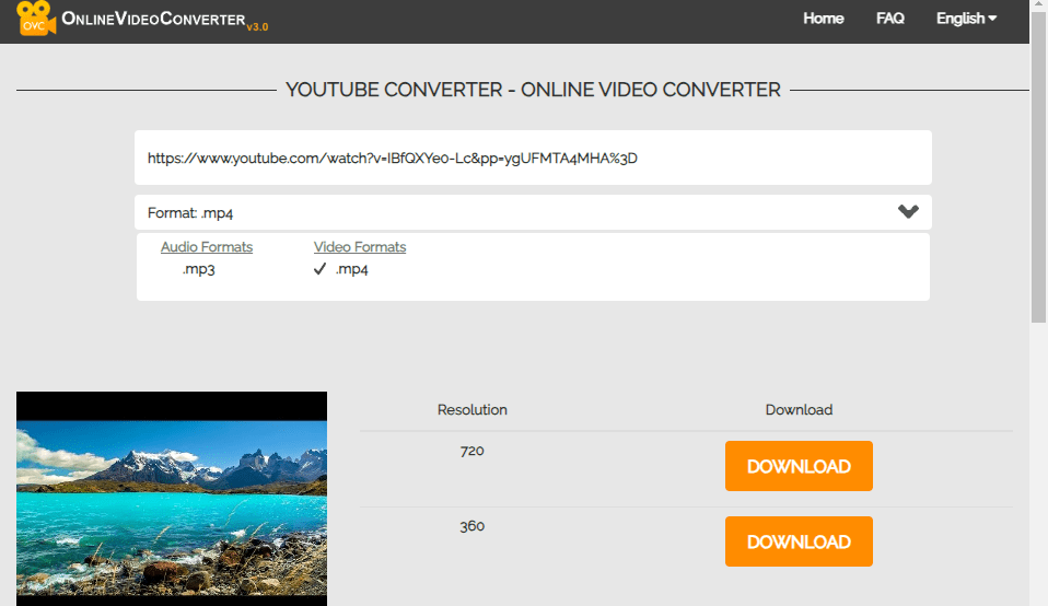 Online Video Converter (OVC) is simple YouTube to MP4 converter compatible with computers and Android devices. You can download and convert YouTube videos to MP4 in 360p or 720p online. Link analyzing is quite fast and it has a better balance with ads, so it’s also an ideal online option if you feel comfortable with lower resolution.